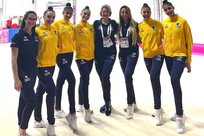 A Seleção Brasileira de Conjunto fez história. Com a participação de duas alagoanas, Duda Arakaki e Bárbara Urquiza, no último domingo (5), o Brasil conquistou a medalha de bronze na etapa de Pesaro, na Itália, da Copa do Mundo de Ginástica Rítmica. O conjunto comandado pela treinadora Camila Ferezin, com uma bela apresentação na série mista, conseguiu a nota 28.650, ficando atrás apenas de duas medalhistas olímpicas em Tóquio: Itália (32.450) e Bulgária (29.850), e à frente de potências como China, Japão e Ucrânia. Para se ter uma ideia do nível de dificuldade da Copa do Mundo, o Brasil conquistara antes apenas uma medalha em etapas da Copa do Mundo: foi em 2013, em Minsk, a capital de Belarus.